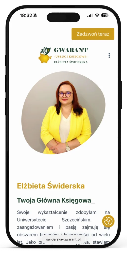 Strona internetowa dla samodzielnej głównej księgowej, pełniąca rolę wizytówki. Projekt skupia się na przejrzystości i profesjonalnym wyglądzie, ułatwiając potencjalnym klientom szybki kontakt i zapoznanie się z ofertą usług księgowych. Dowiedz się więcej o stronach one-page i ich zaletach.